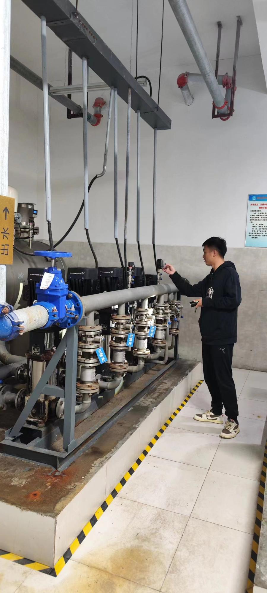 二次供水部門超前部署,高度備戰(zhàn),加強對二次供水設(shè)施、設(shè)備、水箱、水位的巡視巡檢與安全防護,確保高層住宅用戶用水量足質(zhì)優(yōu)。